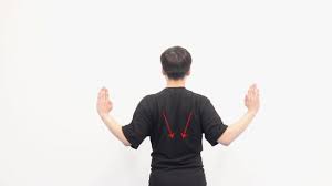 날개뼈 모으기는 허리를 곧게 피고 배에 힘을 준 다음 양팔을 W자 모양으로 만들고 날개뼈가 맞닿는 느낌으로 뒤로 당기는 운동입니다. 양팔을 뒤로해서 날개뼈가 맞닿는 느낌을 5초간 유지한 후 풀어주는 동작을 반복함으로써 거북목을 교정하는데 도움이 됩니다.