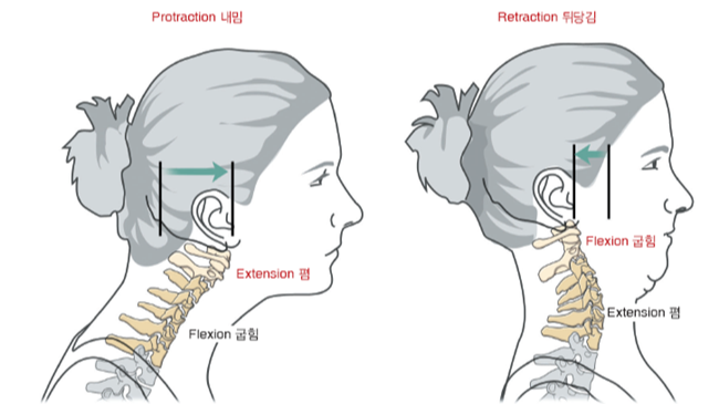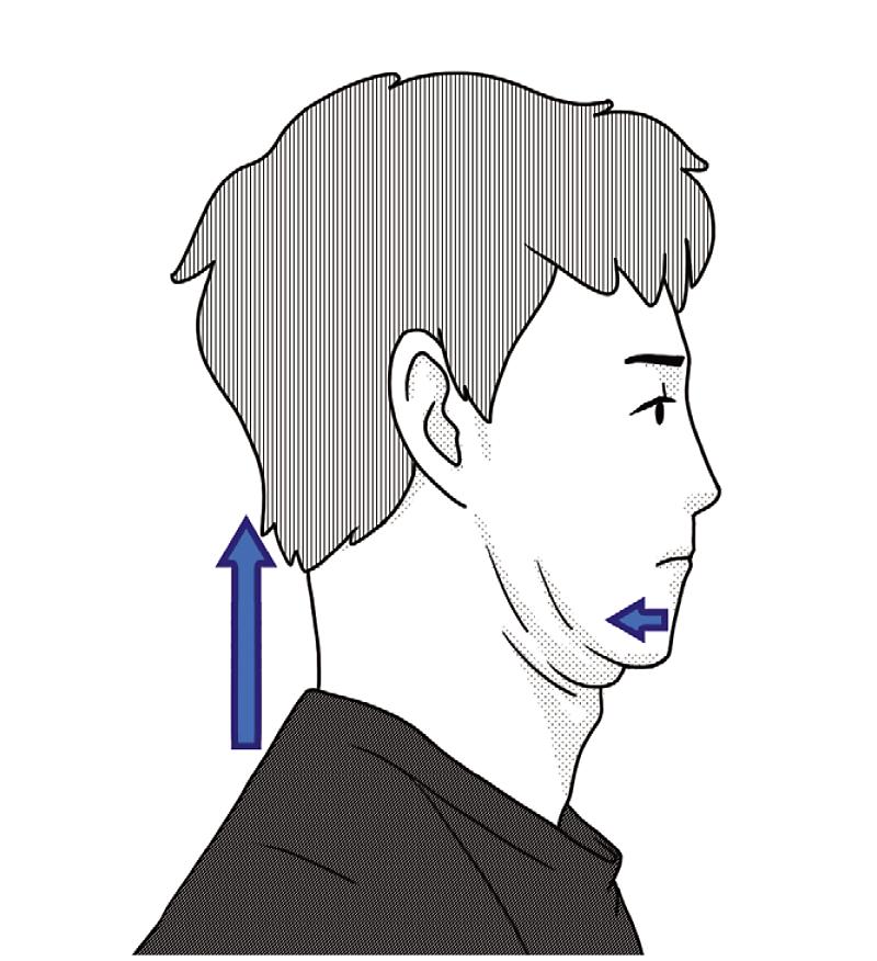 턱 당기기는 어디서든 할 수 있는 쉬운 운동 방법입니다. 얼굴이 앞을 똑바로 바라보게 한 다음 턱을 가슴 쪽으로 당겼다가 다시 들어주면 됩니다. 이때 턱을 가슴 쪽으로 천천히 가져가야 하며 뒷목 근육이 스트레칭되는지를 느껴야 합니다.