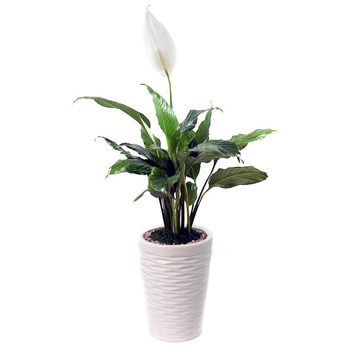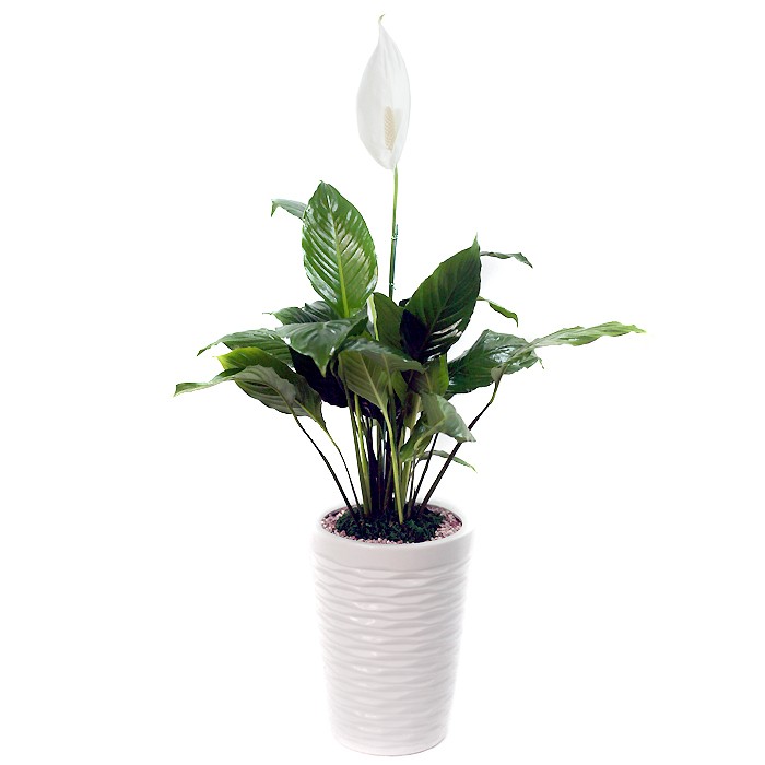 스파티필름은 우아한 아치형의 잎으로 유명합니다. 광택이 나는 짙은 녹색의 잎과 실제 꽃을 둘러싸는 독특한 흰색 포가 특징입니다. 스파티필름은 포름알데히드, 벤젠, 트리클로로에틸렌과 같은 실내 오염 물질을 제거하는 능력도 뛰어나지만 공기 중의 곰팡이 포자를 제거하는 데에도 도움을 주기에 알레르기나 호흡기 문제가 있는 사람에게 특히 도움이 되는 공기정화 식물입니다.