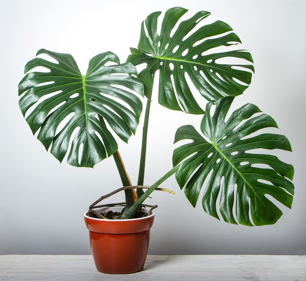 몬스테라는 잎이 크고 광택이 나며 구멍이 뚫린 독특한 외관을 가지고 있습니다. 몬스테라는 일산화탄소를 제거하는 능력뿐만 아니라 유독성물질, 포름알데히드 등과 같은 물질을 제거하는 효과도 뛰어나 공기정화에 도움이 됩니다. 하지만 직사광선에 몬스테라를 키우게 되면 잎이 탈 수도 있어 직사광선은 피하되 밝은 곳에서 키우는 것이 좋습니다.