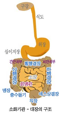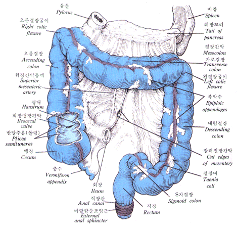 회장 (Cecum): 소장과 맹장이 연결되는 지점으로, 소장의 시작 부분입니다. 아무런 역할을 하는 것으로 알려진 것은 아니지만, 소화 과정에 있어서 일종의 보관고의 역할을 할 수 있다고 생각되고 있습니다.