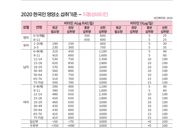 그렇기에 건강을 챙기는 사람이라면 피부에서 자외선이 만나 합성되는 비타민D 외에도 음식과 영양제에서 비타민D를 섭취해 하루 권장량을 채우려고 할 겁니다. 오늘은 보건복지부와 한국영양학회에서 개정한 '2020 한국인 영양소 섭취기준(Dietary Reference Intakes Koreans, KDRIS)'에서 확인된 내용으로 비타민D 하루 권장량과 비타민D를 보충할 급원식품을 알아보겠습니다.